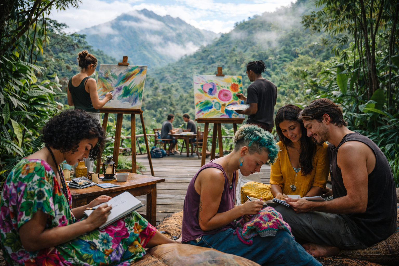 From my studio I listen to the pitchy giggles of children playing, melding with the sound of cicadas and the variance of birds that are in constant conversation, dogs barking, motorcycles revving over rock riddled roads.