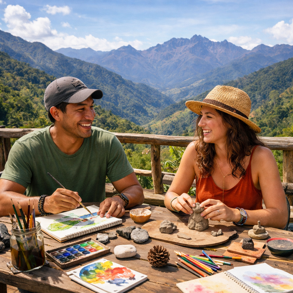 Our events prioritize comfort, safety, and respect—so you can show up as you are and fully engage in the process. May it be in a warm cozy cafe setting or in the open air platform surrounded by mountain jungle. Inspiration emits from the space, fuelling your process.